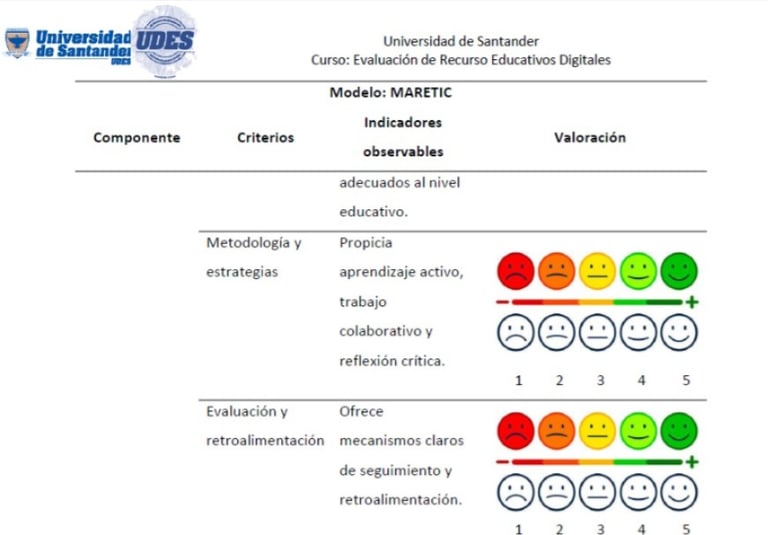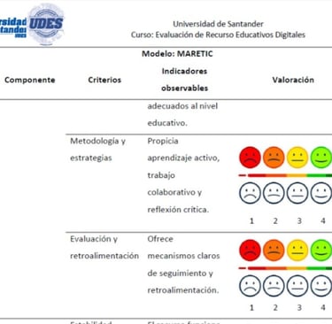 Al descargar el archivo podemos encontrar: un rediseño del modelo de evaluación de Recursos Educativos Digitales (RED) denominado MARETIC (Modelo de Análisis y Retroalimentación Educativa para Tecnologías de la Información y la Comunicación), el cual surge como una propuesta integral, flexible y humanizada que busca equilibrar la rigurosidad técnica con la sensibilidad pedagógica. Este modelo, inspirado en referentes como COdA, LORI y FURPS, plantea una evaluación formativa, participativa y contextualizada que valora no solo la funcionalidad del recurso, sino también su impacto en la experiencia de aprendizaje. El MARETIC se estructura en cinco componentes —pedagógico, técnico, comunicativo-estético, ético-valoral e inclusivo, y de evaluación formativa— que permiten analizar la coherencia educativa, la accesibilidad, la calidad comunicativa, la inclusión y la retroalimentación continua. Además, emplea una escala de valoración tipo Likert y un proceso metodológico en cuatro fases (planeación, aplicación, análisis y mejora continua), promoviendo la reflexión crítica y el trabajo colaborativo entre docentes y estudiantes.